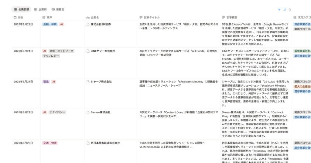 今回PICKさせていただいたテクノロジー、情報通信、メディア・広告分野の事例からは、生成AIを「試行」から「実装」へ進める流れが加速していることを強く感じました。既存業務の効率化を超えて、事業モデルの革新や顧客価値の向上に挑戦しようという取り組みも目立ちます。本データベースが、多様な知見を結集し、導入を模索する企業にとって確かな道しるべとなることを心から願っています。