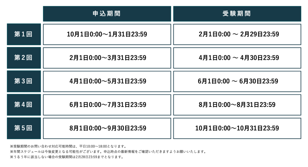 受験期間 :2026年2月1日(日)0:00〜2月28日(土)23:59